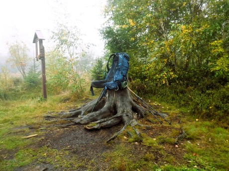 batoh sedí jeho nosič leží pohozen opodál a tiše úpí